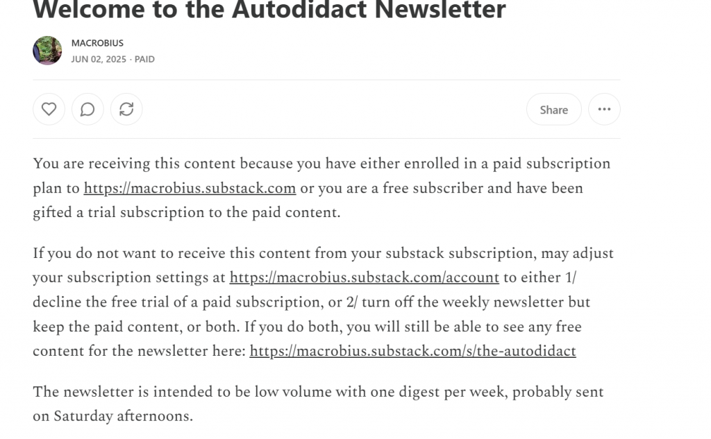 Welcome to the Autodidact Newsletter – by Macrobius (paid subscription required but see STI-Registration page here for same content free!)
