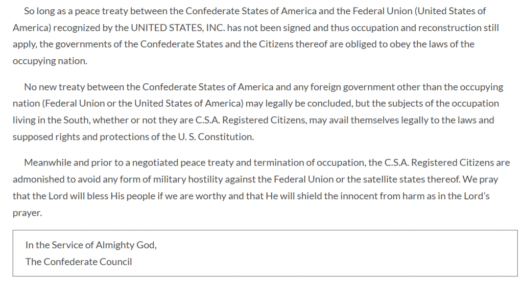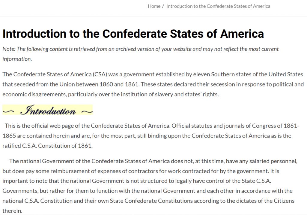 Down the rabbit hole: Confederate States of America *Main* CSAgov.org – Offical Govnerment Website