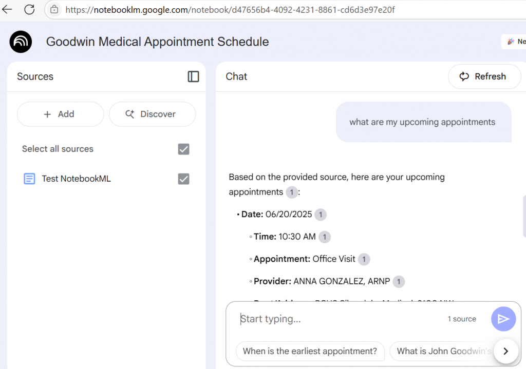 I can use ‘Agentic AI’ to scan a document with my upcoming appointments (a well-visit follow up and a dental cleaning) and Google will make up a 5-minute podcast in the language of my choice about it: